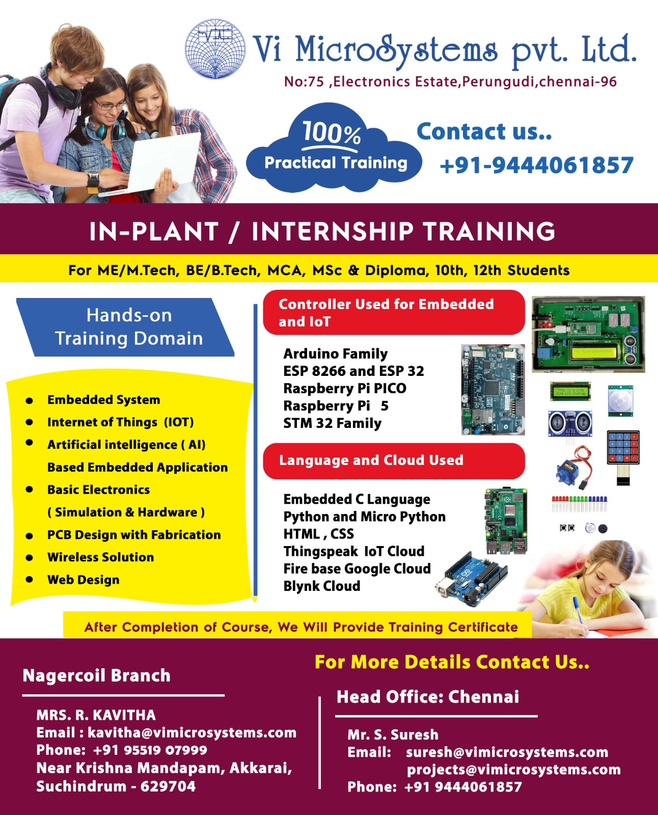 This value Added Courses conducted by Vi Microsystems Pvt. Ltd., at our chennai head office. The course mainly motivated to impart the technical skills to the participants with 100% Hands-on. The well - qualified professionals from our R&D division going to handles the Theory and Practical classes.